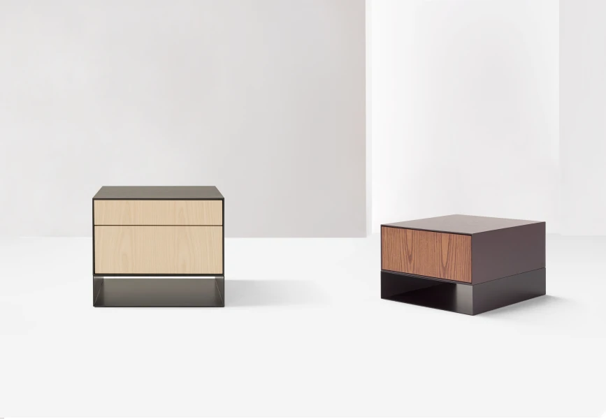 Duepiani, disegnato per MARK’S è un pratico e poco ingombrante comodino da uno o due cassetti caratterizzato da linee semplici e pulite.