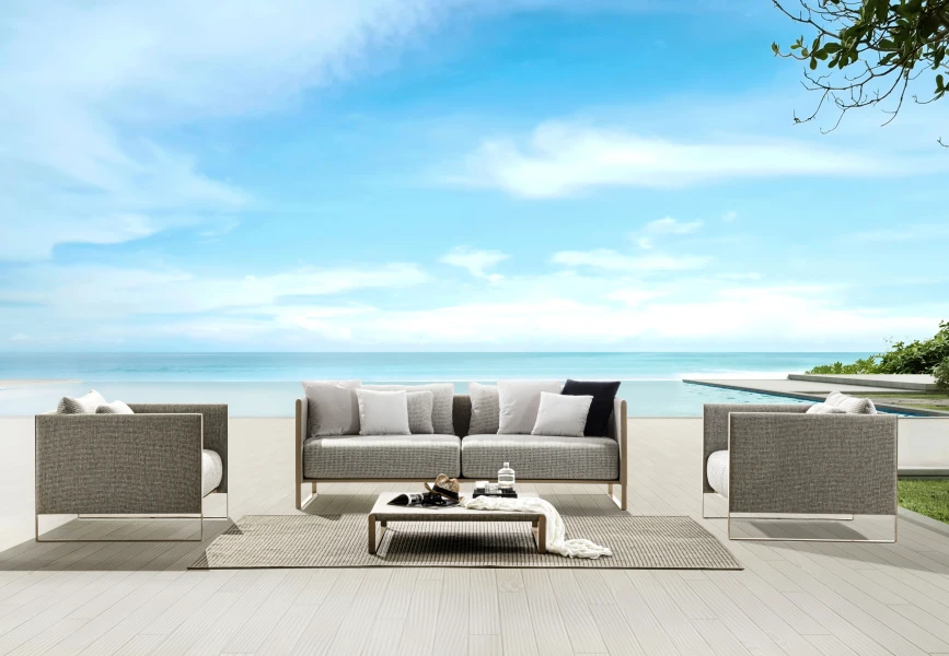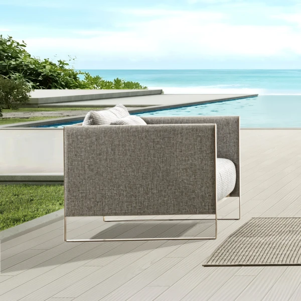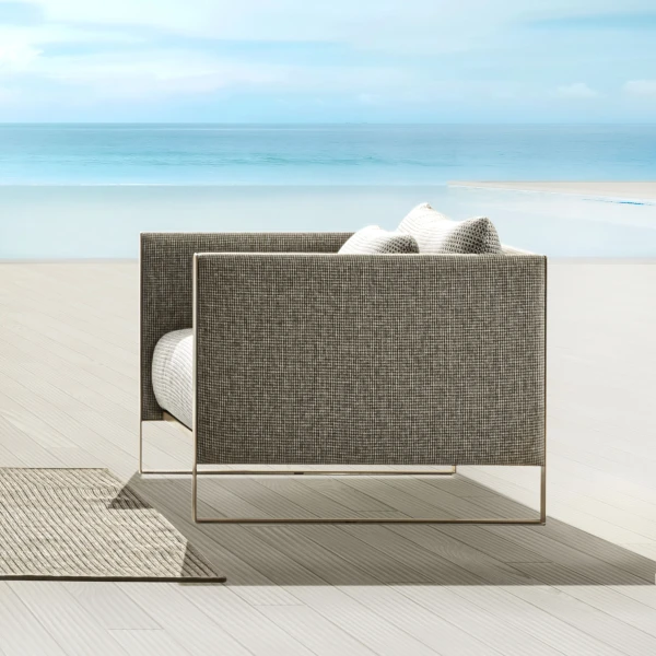 Noto, disegnato per Meroni & Colzani è un divano raffinato e minimal. Dotato di grande eleganza, la sua struttura in acciaio a vista nei braccioli e nelle gambe crea un delicato contrasto tra tessuto e metallo, tra durezza e morbidezza che lo rende adattato ad ogni genere di esterno e tipologia di ambiente.