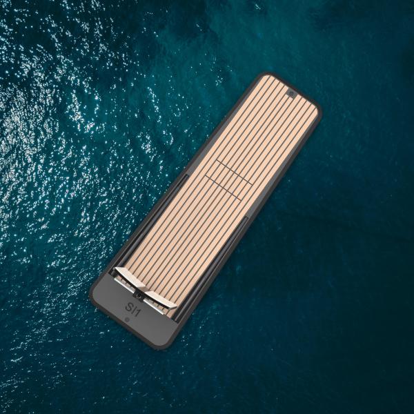 S1 è una piccola piattaforma galleggiante realizzata interamente con plastica riciclata raccolta in mare con cui navigare per mari, fiumi o laghi.